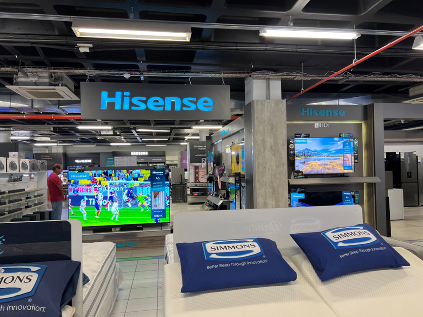 会上,各协会代表聚焦了绿色低碳、可持续性等全球家电行业关注的共性议题,还介绍了各地区的趋势和重点工作。南非家用电器协会(SADA)负责人Mark Saunders介绍了南非的地理环境和经济情况、家电行业的市场情况和主要品牌。据介绍,南非市场规模小于全球市场规模的1%,在南非本土制造的家电品类主要是制冷电器和烹饪电器,其余主要依靠进口。目前南非市场的中国品牌包括海信、海尔和美的,其中海信在南非拥有制造工厂。为直观感受南非家电市场,5月16日,SADA组织IRHMA代表团参观南非大型连锁家电卖场Hirsch’s Home Store的Milnerton店,Hirsch’s CEO Richard Hirsch热情接待了IRHMA代表团。Hirsh’s成立于1979年,从早期的家电维修和售后服务商逐步成长为南非大型连锁家电卖场。Hirsch’s目前在南非有19家分支机构和概念店,销售产品偏高端,海信在Hirsch’s设有专区和售后服务中心。